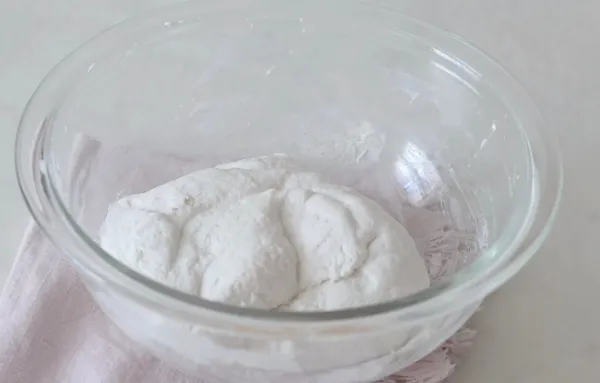 <発酵>容器に入れてラップをして、常温で30分発酵。