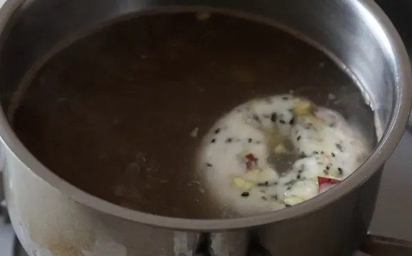 <茹でる>沸騰したお湯にはちみつを加え、6を片面30秒、裏返して反対も30秒茹でる。