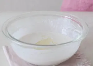 ボウルに米粉、きび砂糖、ドライイースト、塩を入れる。ぬるま湯を入れて混ぜる。