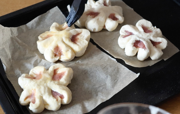 残りの溶き卵を刷毛で塗り、予熱した200℃のオーブンで15分焼く。